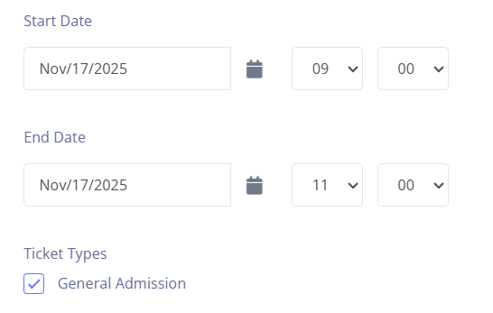 Hint: the Clone Session and Clone Ticket Type functions can help you create sessions and ticket types with similar properties fast.